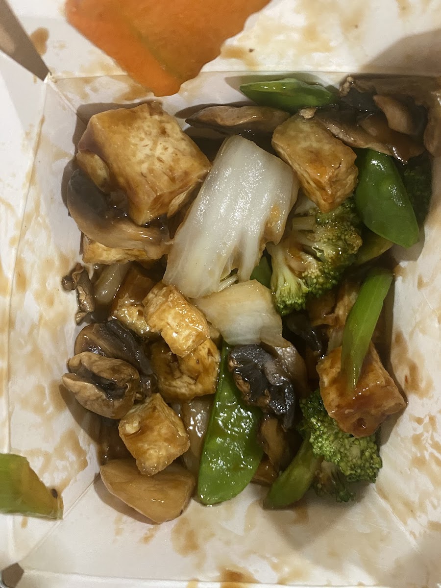 Satisfying to the large appetite Chinese take out. This is tofu vegetable, eggplant, general tso, and moo shu. Photos look messy but it is really good. Eggplant especially well cooked.