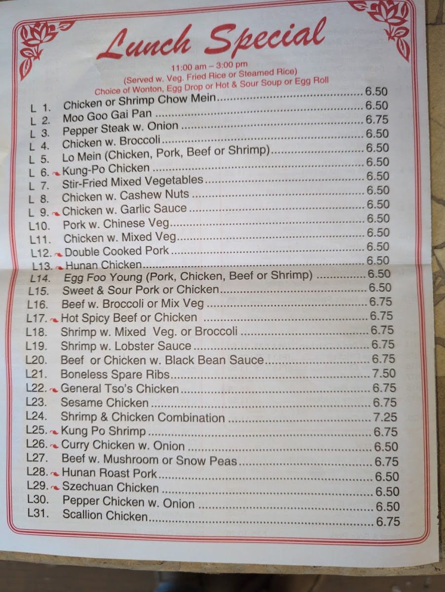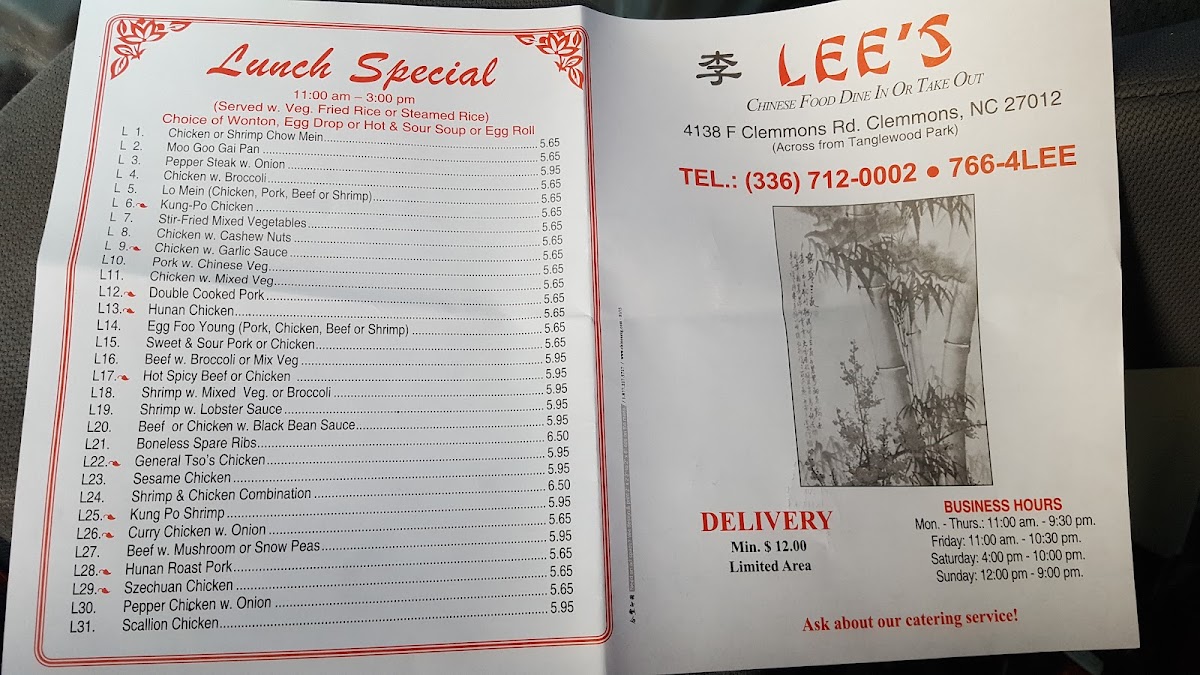 The atmosphere at Lee's, with its modest dining space and friendly service, complements the menu’s easygoing spirit. Generous portions and a menu that’s responsive to different tastes make it a dependable choice for those who appreciate classic Chinese takeout with straightforward, satisfying flavors.